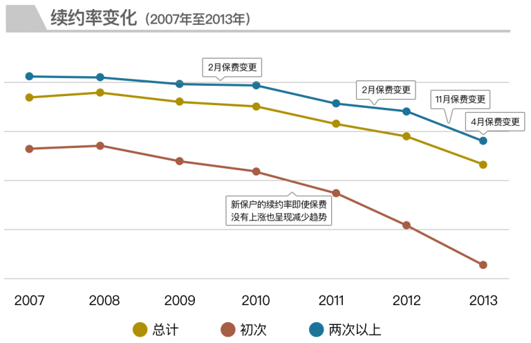 某市场领先的互联网保险业者,自成立以来长期保持市占率第一,在外部机构发表的NPS调查中皆名列前茅。然而,近几年来,该业者发现既有保户的续约率呈现下降趋势,如下图,未来恐对收益性造成影响,提升续约率成为急迫解决的课题,希望通过beBit的客户研究结果,提升客户体验的价值,最终创造出忠诚客户,达到增加续约率的目标。